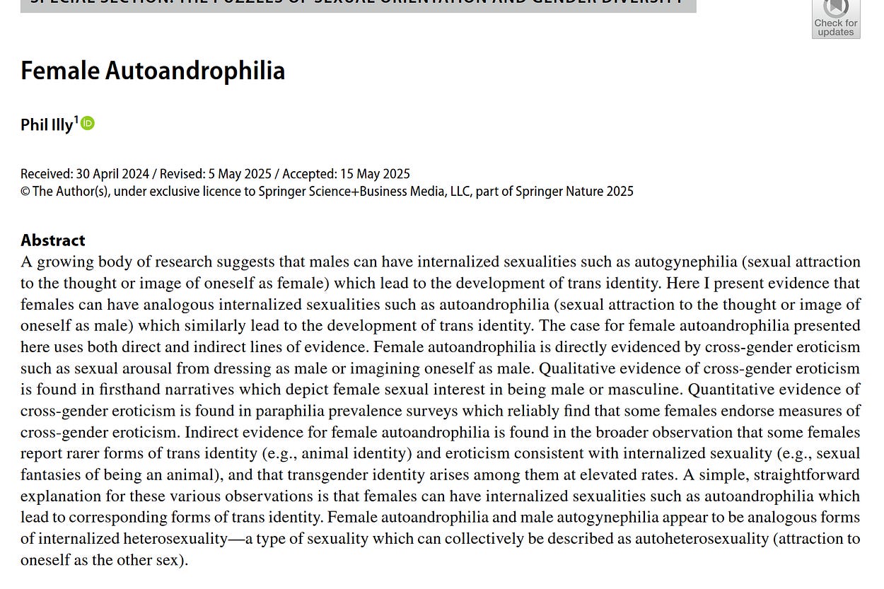 When engaged in autogynephilia discourse, I’ve repeatedly encountered MTFs who claim that having a sexual preference for men means they cannot fall…